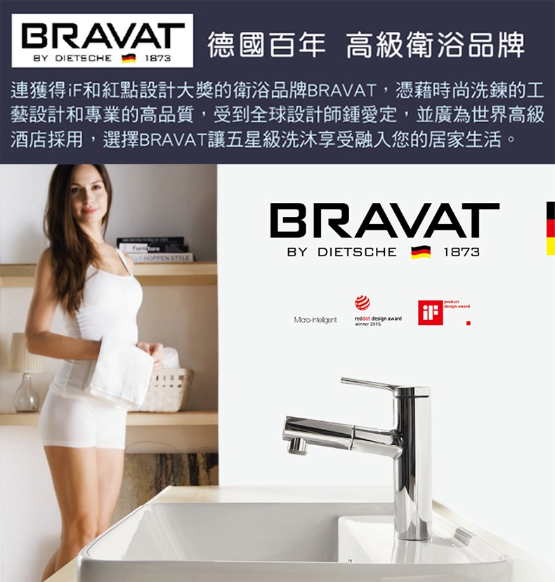 【組合】BRAVAT 茶白除氯一鍵止水蓮蓬頭(一機一心)+濾芯2入