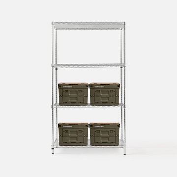 (組合) 特力屋加強防鏽鍍鉻四層架(液透)90x46x160公分+軍風綠木天板收納箱 大x4