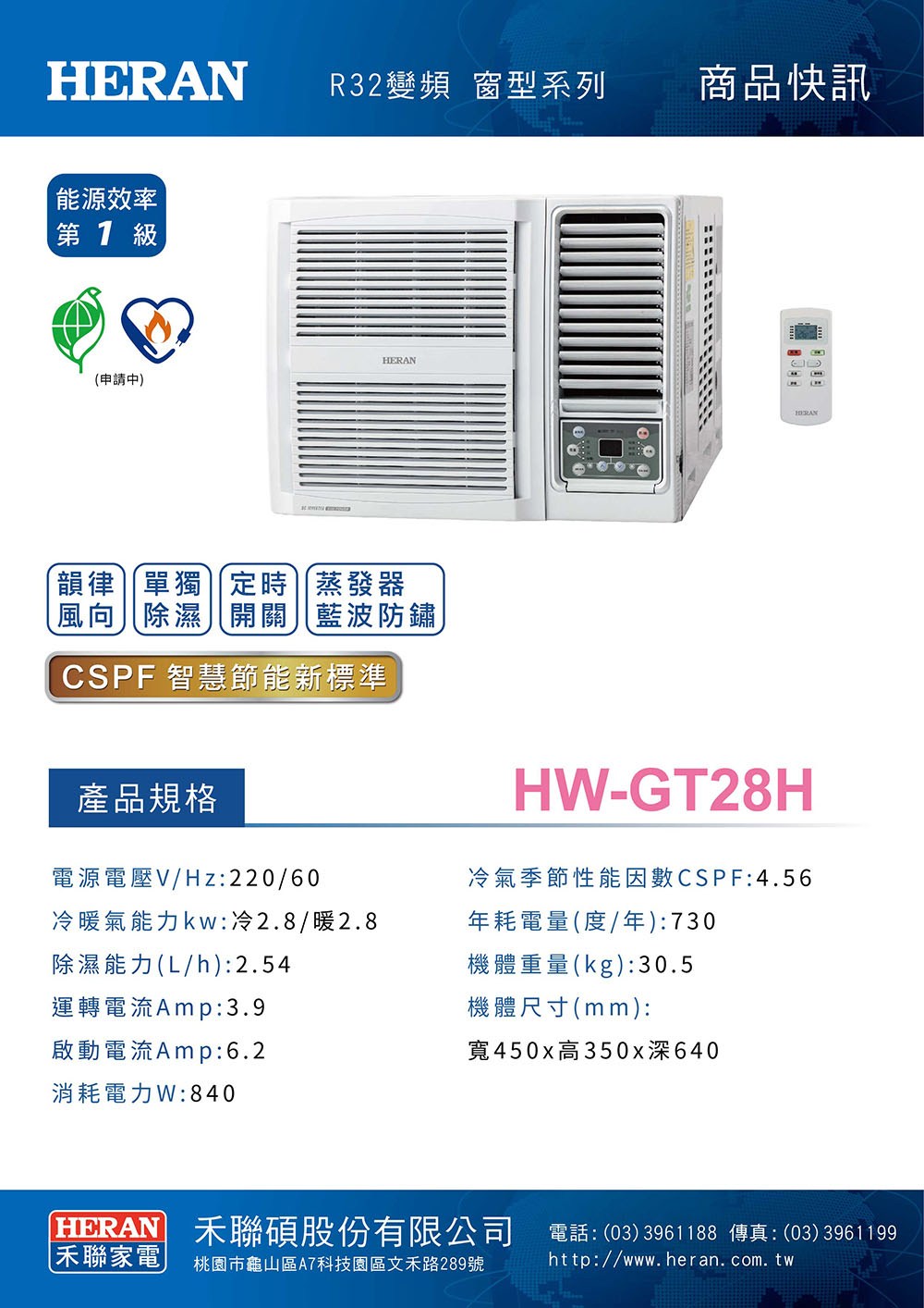 禾聯HW-GT28 變頻R32冷專窗型冷氣