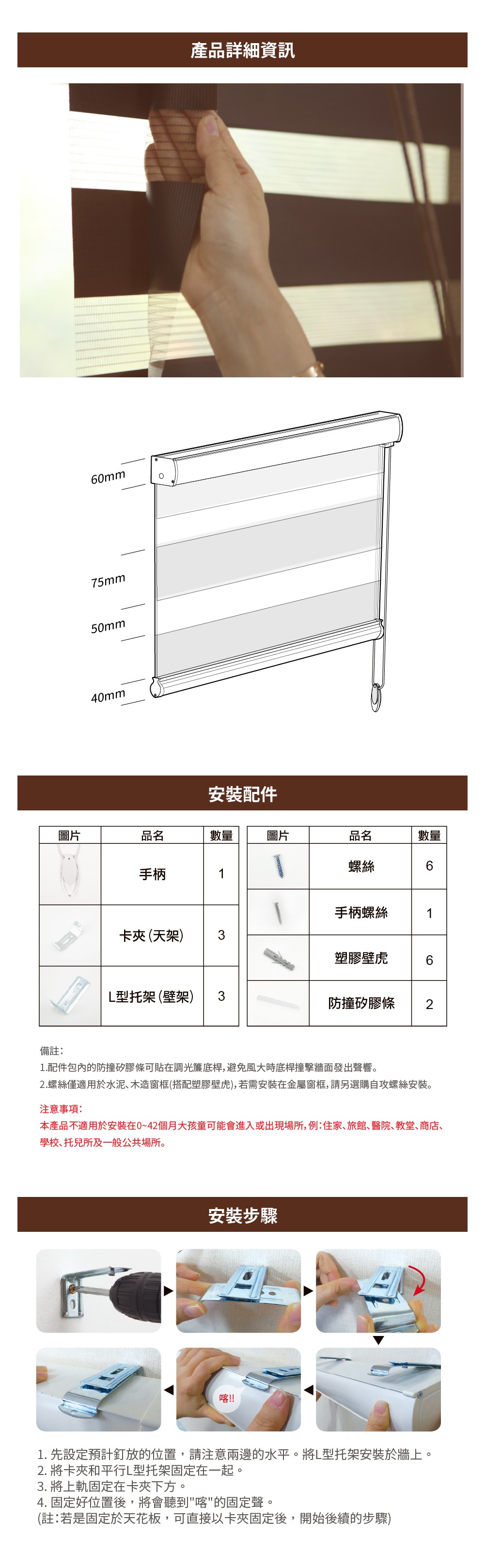 特力屋 防焰可調光遮光捲簾 咖色 90x185cm