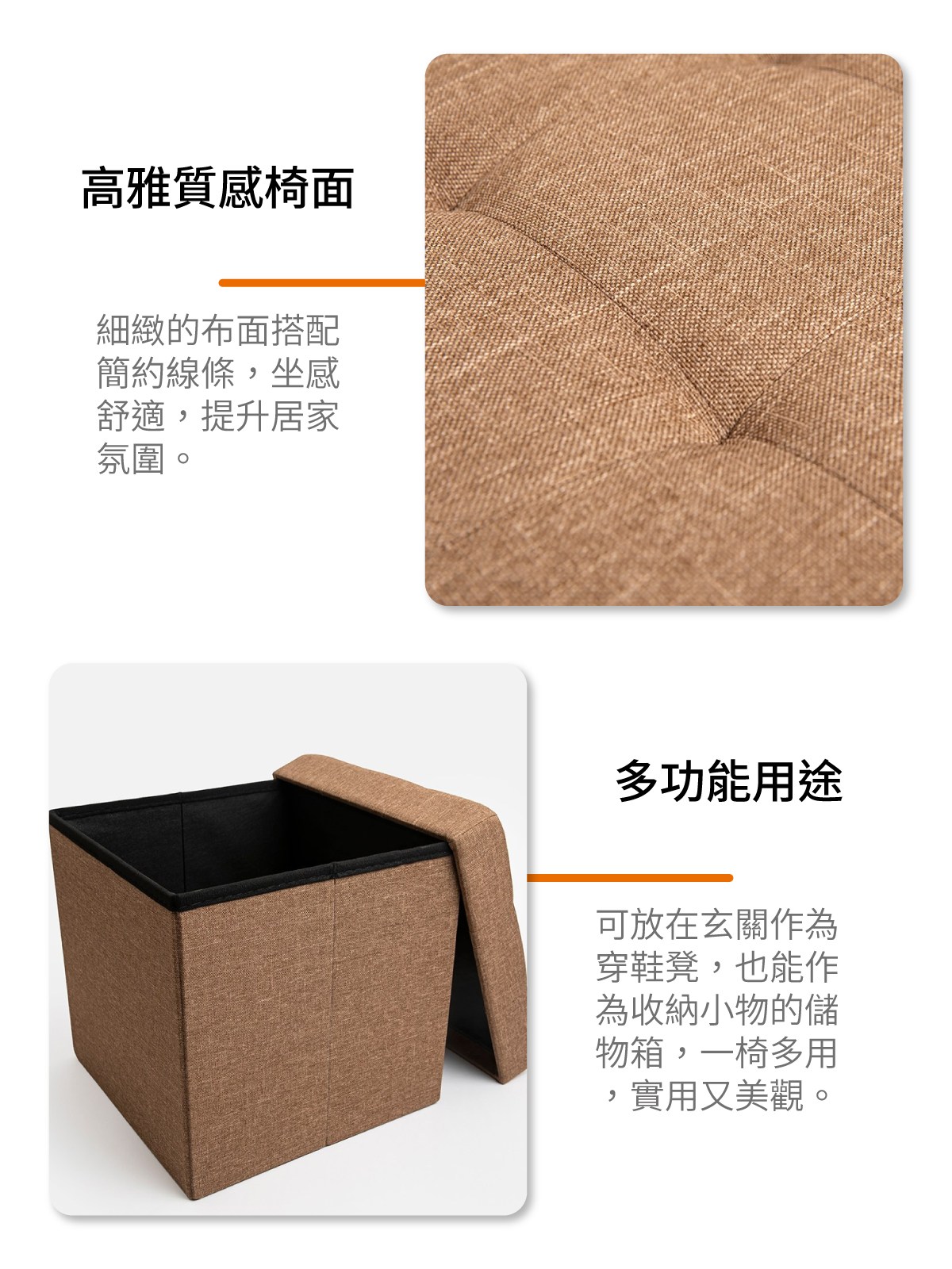 小麥購物 儲物收納凳 正方形 C165 1178g 1個 橘色