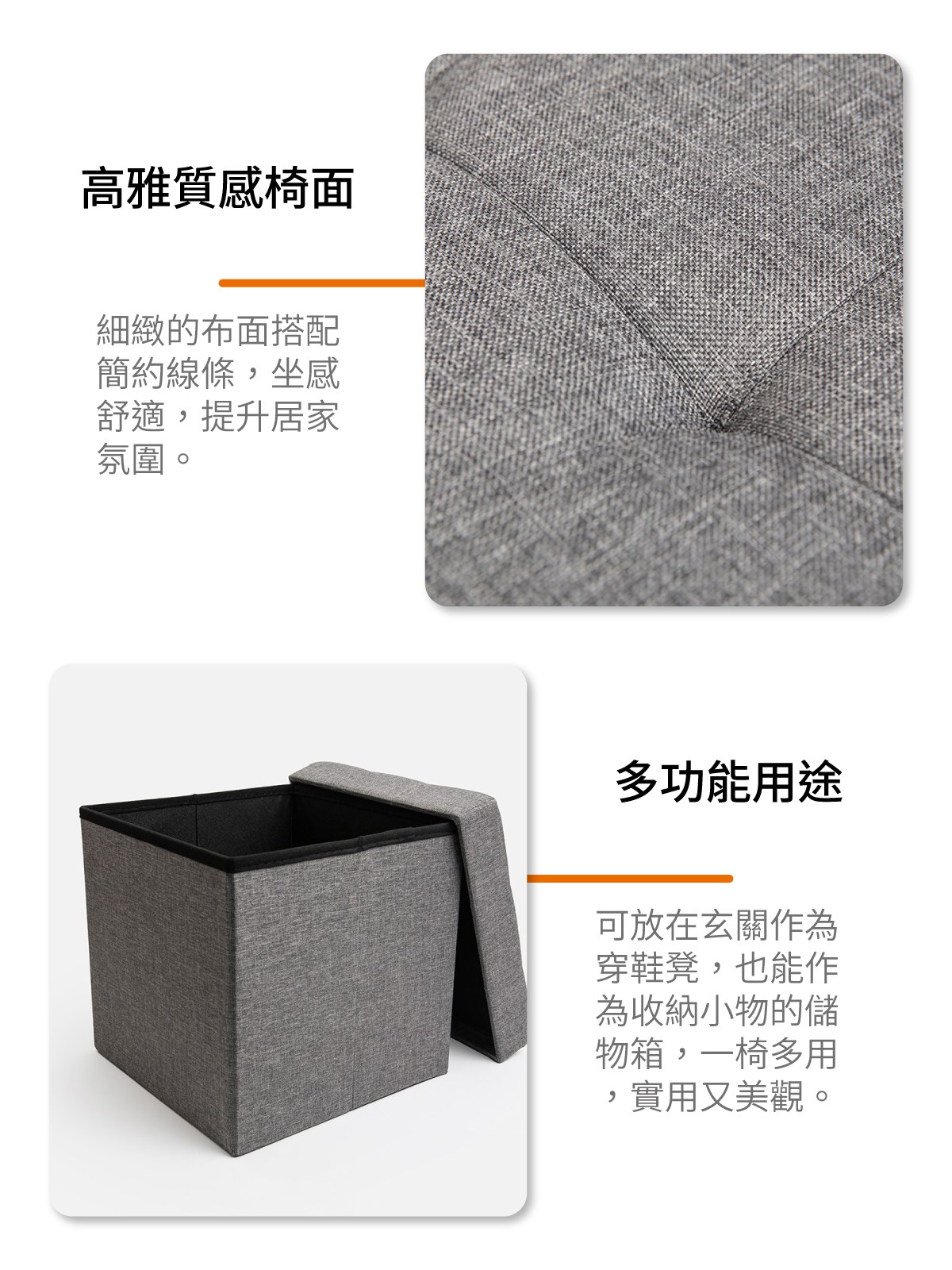 SIANG SI 多功能可折疊棉麻收納凳 40 x 25 x 25cm 灰色 舒適透氣 1個