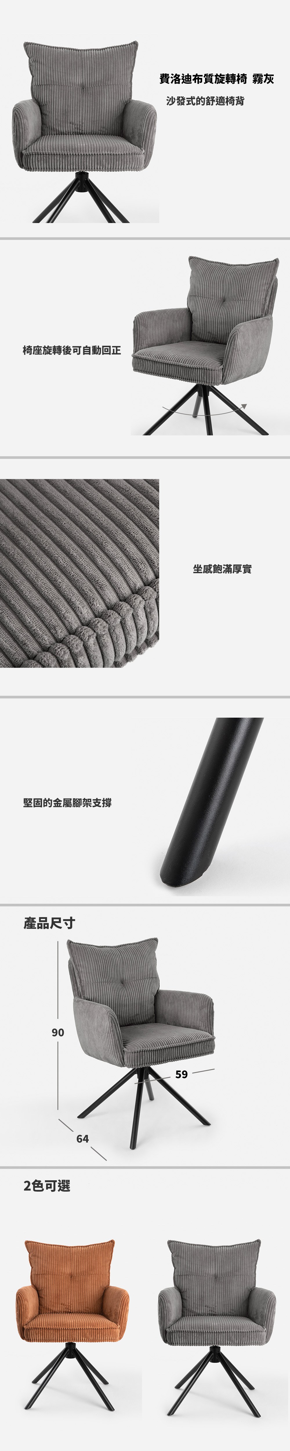 費洛迪布質旋轉椅 霧灰