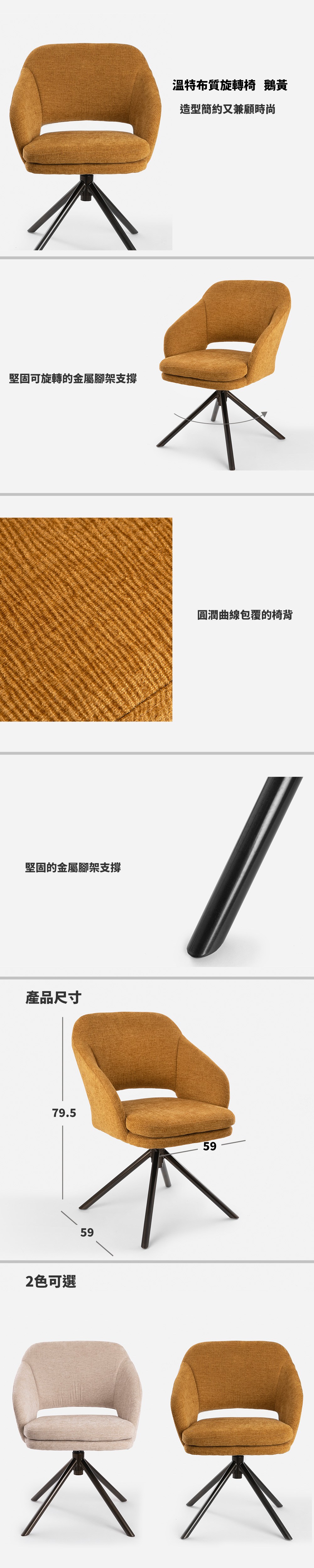 謝爾頓黃色旋轉布餐椅