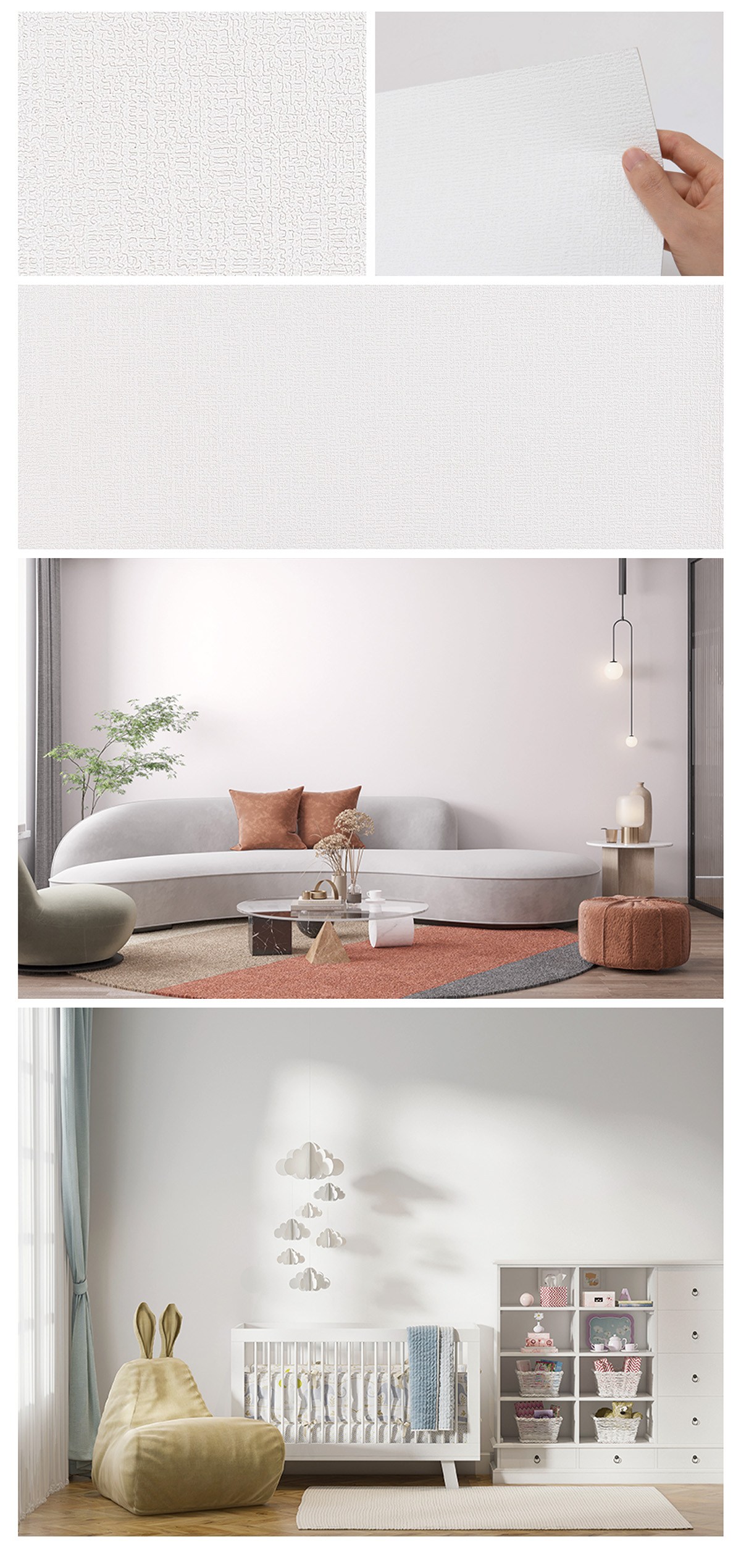 WE CHAMP 環保無紡布自黏式壁紙 WTB-792 500 x 53cm 素色壓紋白