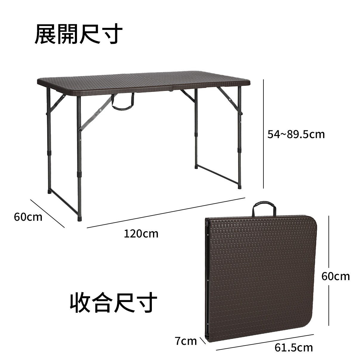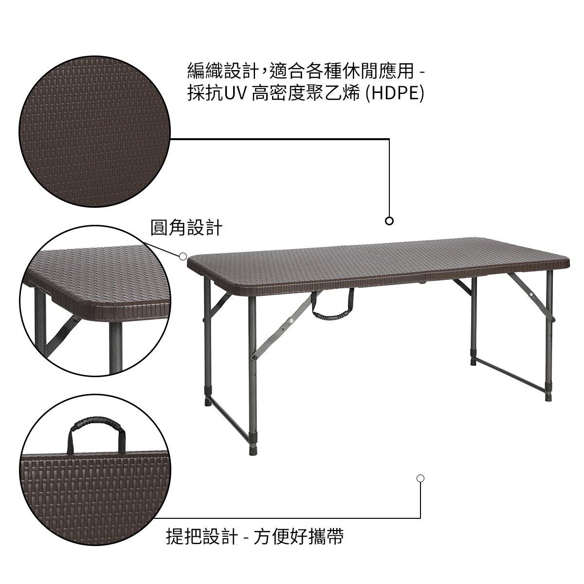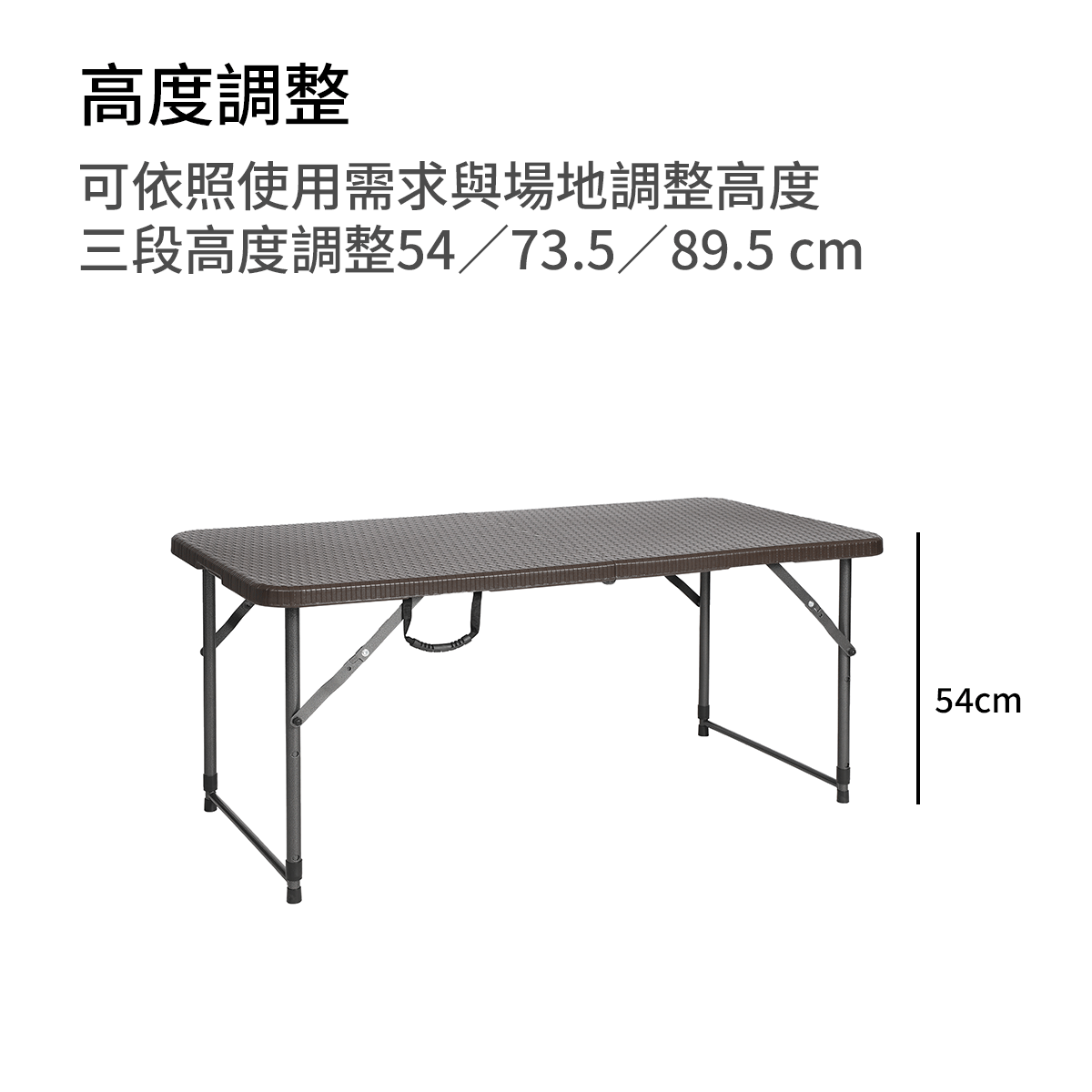 特力屋 四呎編織紋可調高折疊桌 棕 戶外家具