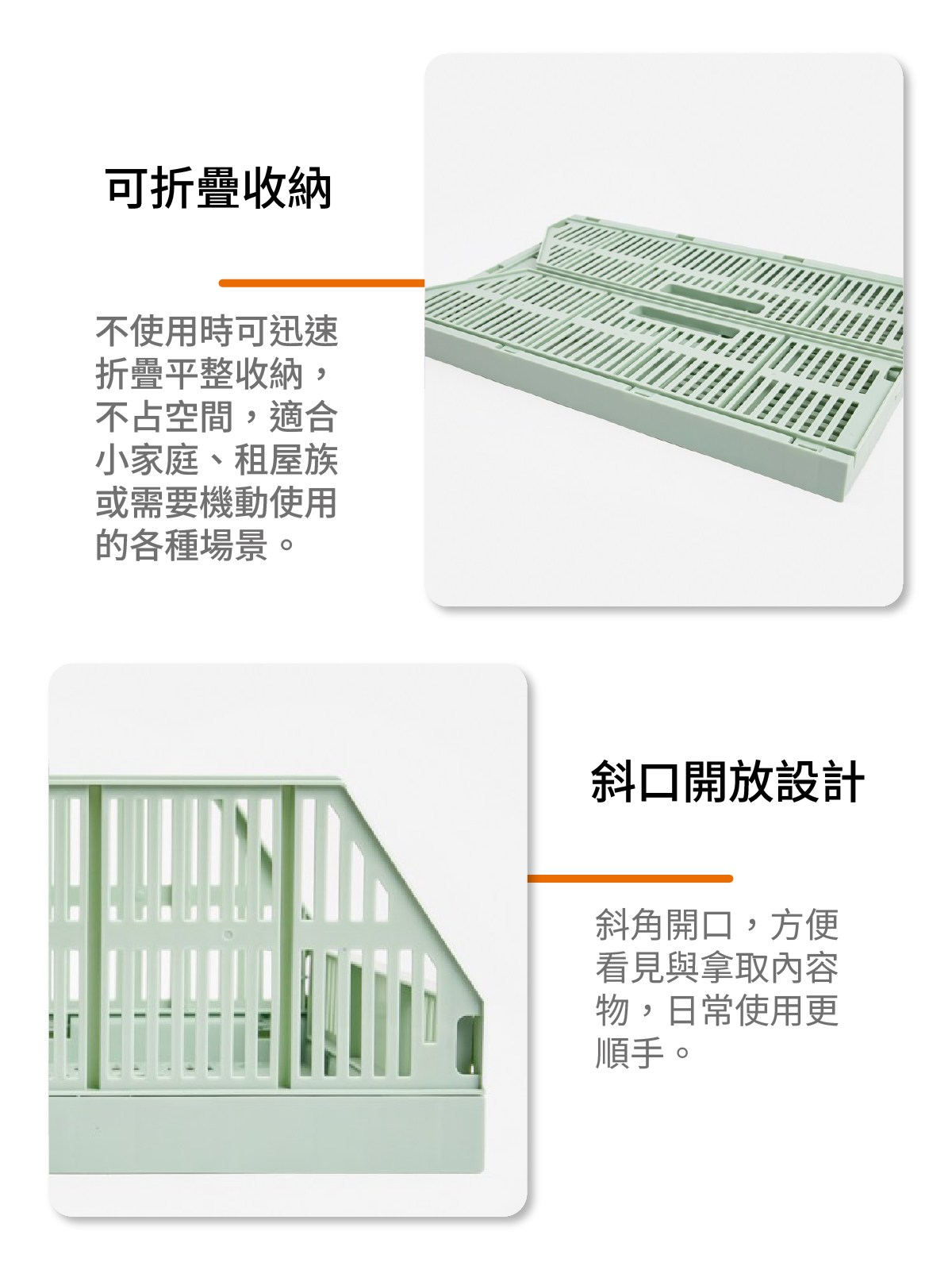 可折疊斜口收納籃M 淺綠