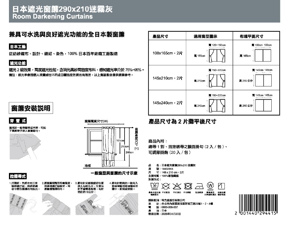 風華單層紗簾 寬290x高210cm 米白色