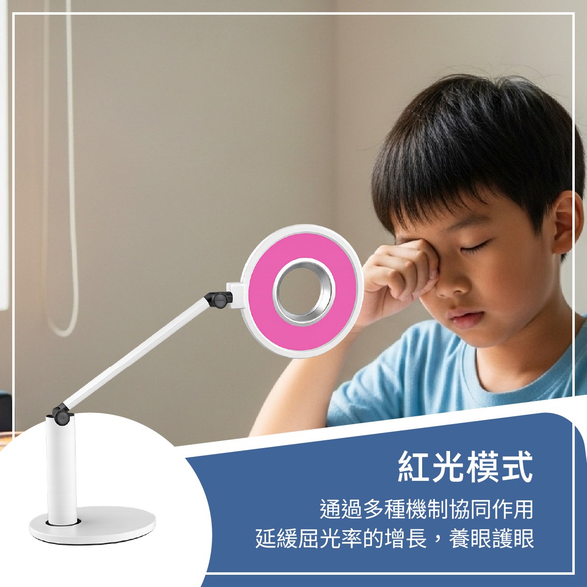 金紅光工作模式: 處於工作狀態時,此鍵指示燈將持續閃爍並持續按照金紅光10分鐘-檯燈45分鐘一如此循環,再次觸摸此鍵指示燈恢復常亮表示已從護眼模式退出並切換為檯燈功能。