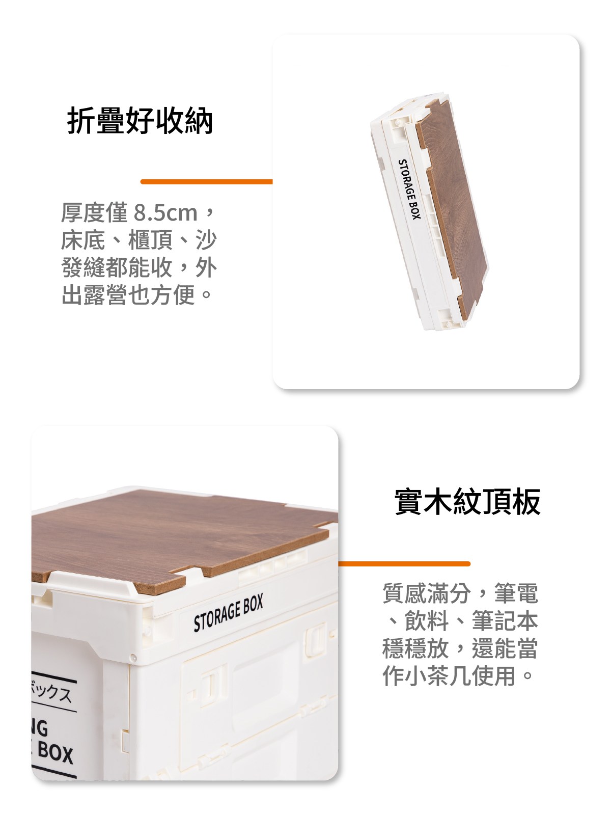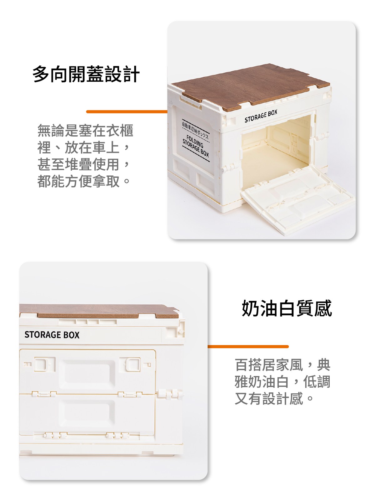 摺疊木天板小收納箱 36X26X28CM 奶油白