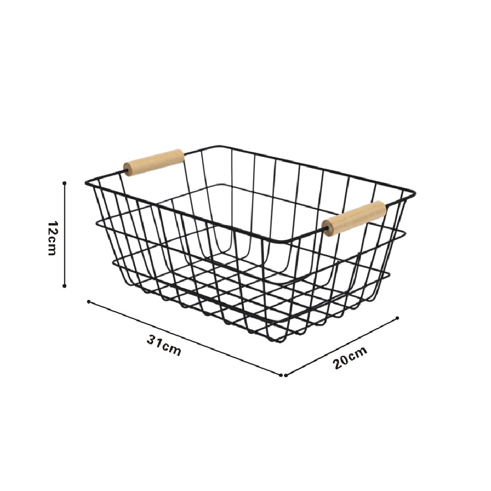 極簡鐵製長型雙提把收納籃 黑 31x20x12cm