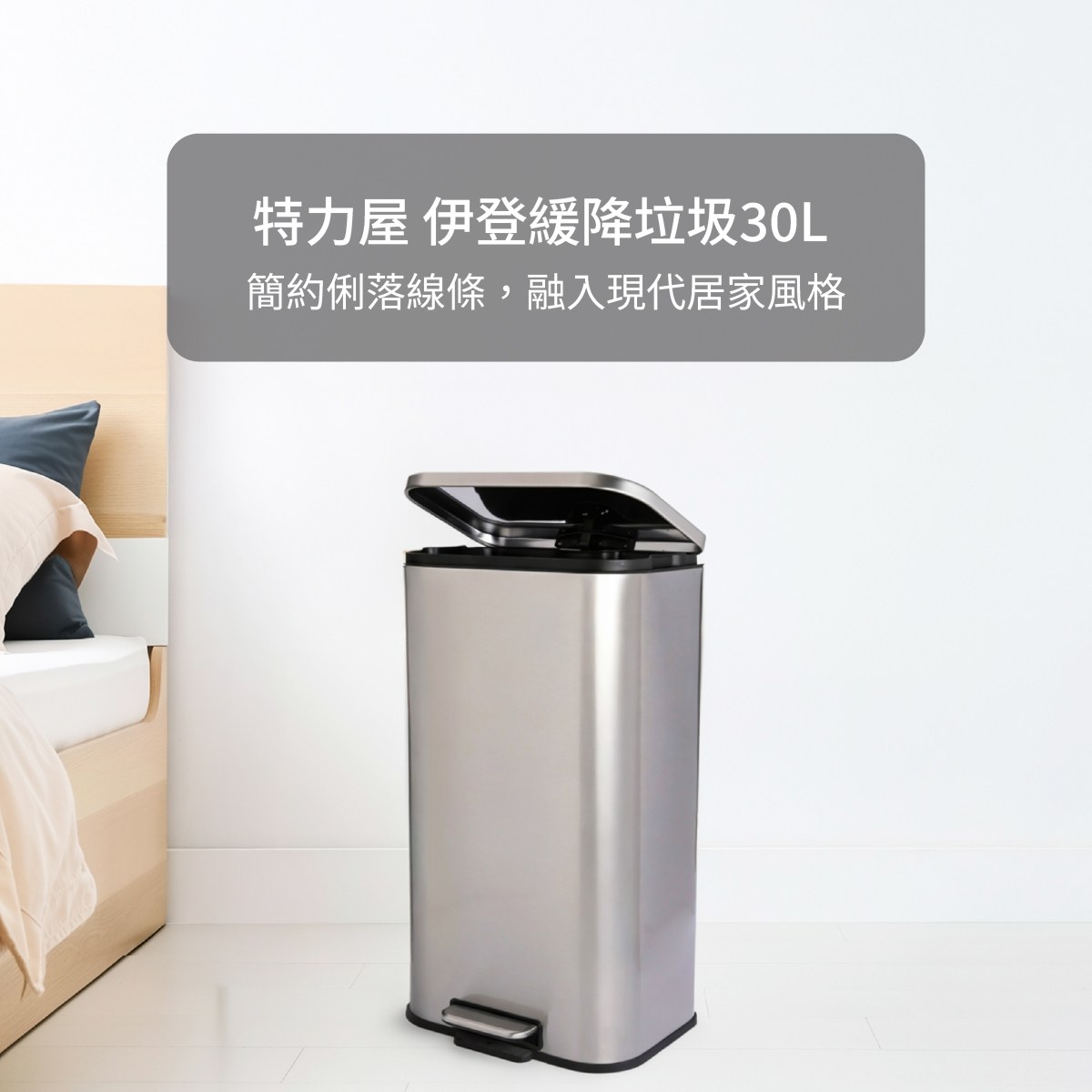 特力屋 伊登緩降垃圾桶 30L 不鏽鋼
