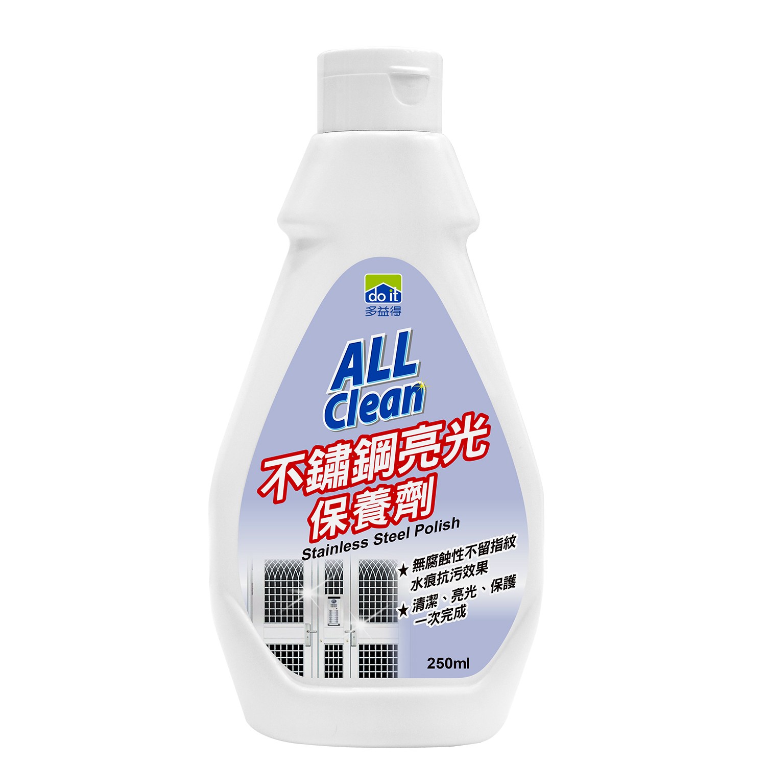 居家或戶外環境常採用不鏽鋼門窗、不鏽鋼製品等等,但風吹日曬下仍容易出現汙黑及表面氧化失去光澤。這款【All Clean不鏽鋼亮光保養劑 250ml】高效率環保配方,無腐蝕性、能安全使用於不銹鋼材質,形成一層分子保護膜、增加表面亮光,有效防止手痕附著、水漬痕跡、皂垢殘留以及隔絕靜電,讓灰塵不易附著在不鏽鋼表面。