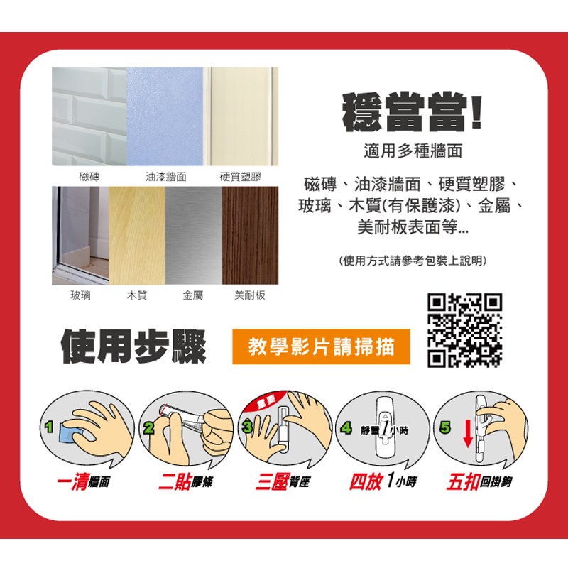3M無痕掛勾系列,不論是黏著在任何質材牆面上使用後除下都不會在牆上留下殘餘膠質,讓居家環境不受使用掛勾上有任何的影響,而且此系列掛勾可承受重量可是完全超乎您所想像。【3M 無痕中型一般掛鉤量販包】可承受1.36公斤的重量,讓您使用更便利!