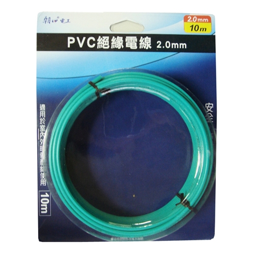 本產品【PVC絕緣電線2.0mm10米(綠)】為PVC絕緣電線,適用於一般暗管配線用線。