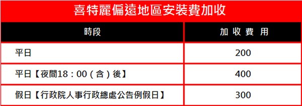 → 安裝時段限 平日 8:00~17:00,例假日或晚間服務需加收安裝費用,將於約訪安裝產品時報價