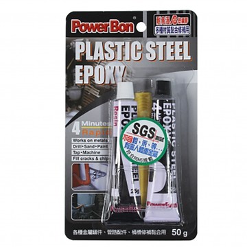 居家金屬製品修補DIY,但卻不知道要修補的物品適合使用什麼樣的膠嗎?這款【POWER BON四分鐘塑鋼膠(鐵糊)-50ML】此款塑鋼膠是一種高分子產品,硬化後具防水性,可防水不生鏽,耐高溫6500F、抗大多數化學侵蝕,且可上漆,不妨礙美觀;另外也可使用在模型、石材、木材、汽車零件或運動器材的修補與接著,是您DIY修補傢俱與各式地板時的好選擇。