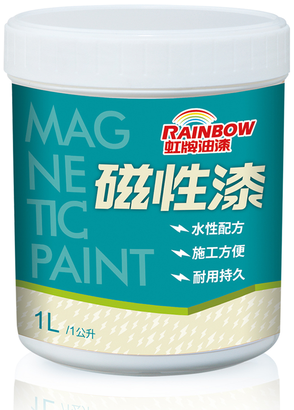 水性環保,無添加甲醛及重金屬,使用水性低氣味樹脂配方,磁性持久不退,施工越多道,磁鐵吸附性越佳,可在上塗水泥漆或乳膠漆來營造繽紛的牆面色彩。