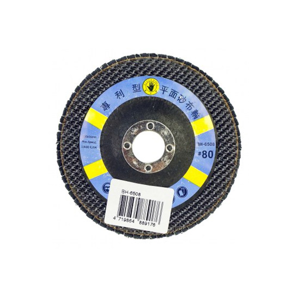 面對頑強需要打磨的材質,就交給【黑手牌專業級平面砂布輪 4吋 #80】,需要搭配電動研磨機使用,利用轉圈方式來研磨物品,此砂輪片不但耐磨,且用於一般金屬表面,研磨耐用壽命長,研磨力均勻,加工效果佳,提供安全的操作環境,排屑溝槽設計,提升排屑效果,安全纖維材質背盤可以自然被消耗,以增加砂布輪使用壽命,並提升電動研磨機的使用效率。更換砂輪片時請謹慎確認砂輪片是否為高溫狀態,更換及操作切斷機時,則要配戴防護設備,以確保工作過程之安全。