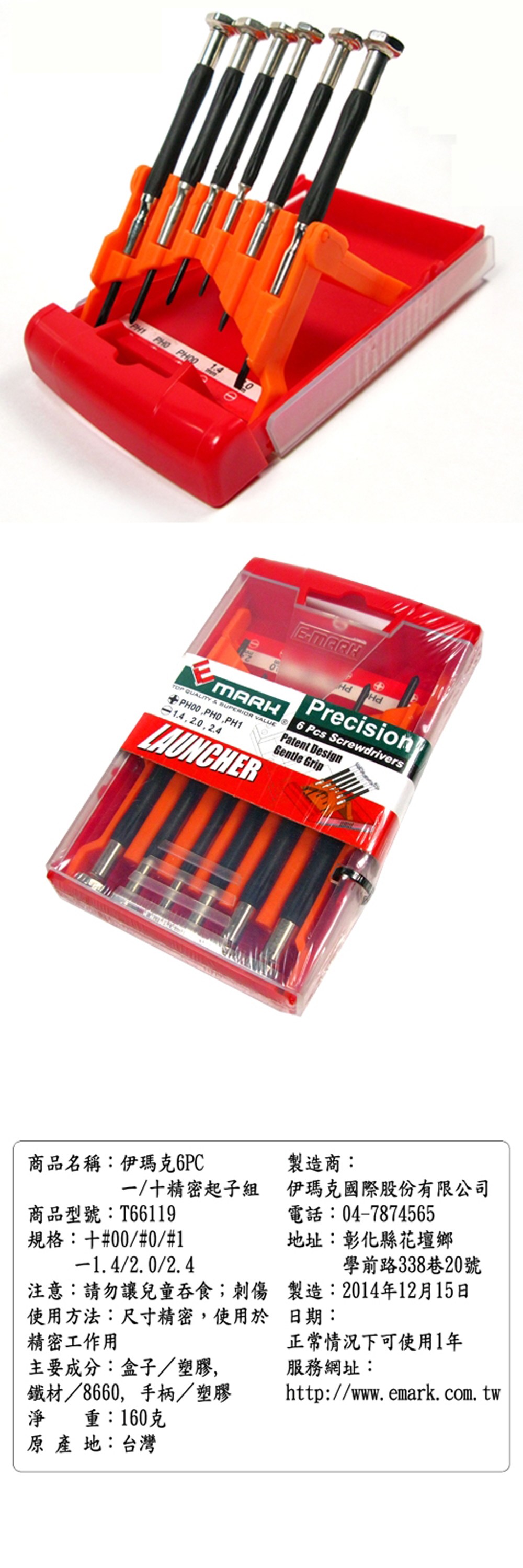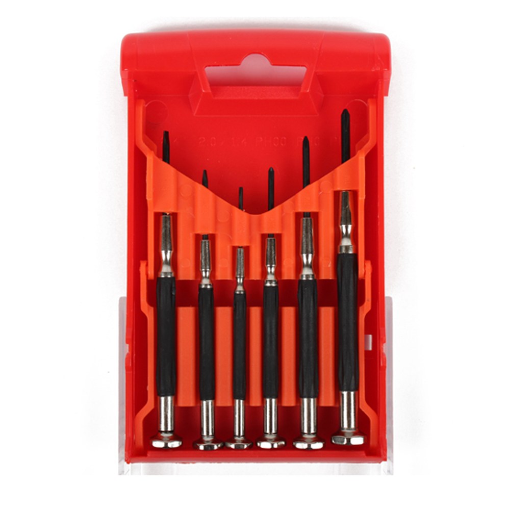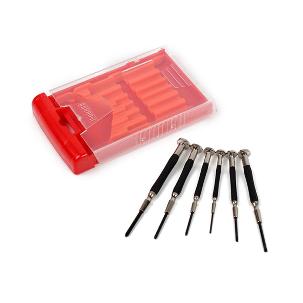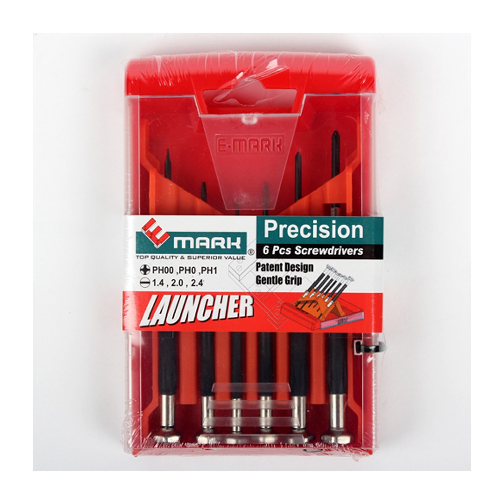 這款【E-mark 6PCS 精密起子組】不同口徑的起子組合,提供您使用上多種不同選擇,握把增加橡膠保護,增加摩擦係數,使用更順手,附加收納盒,收藏更方便。專門適用於較精巧精緻的物品上的小螺絲,例如眼鏡、手機、電腦等等。