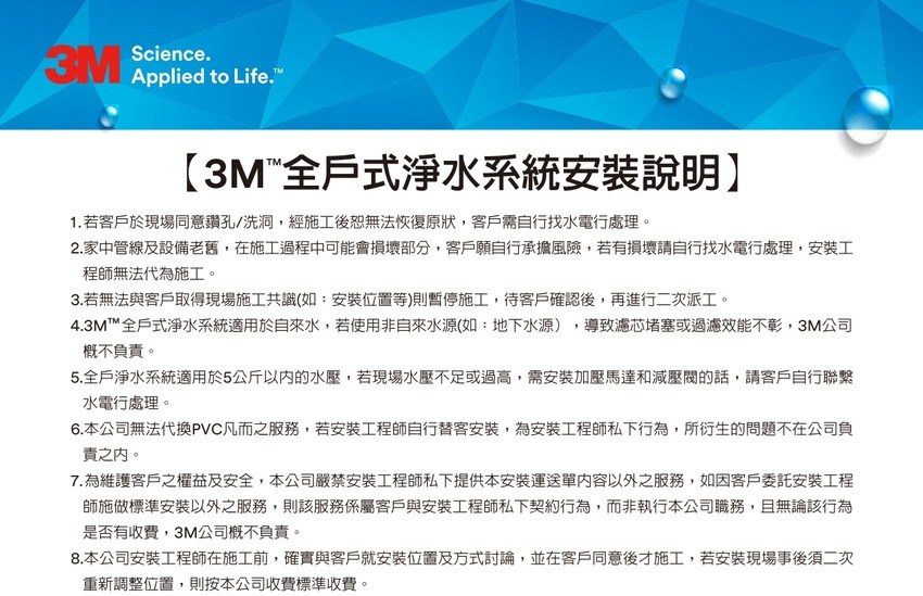 (例如:水壓過小時會建議自費加裝馬達、水壓過大時會建議自費加裝減壓閥)