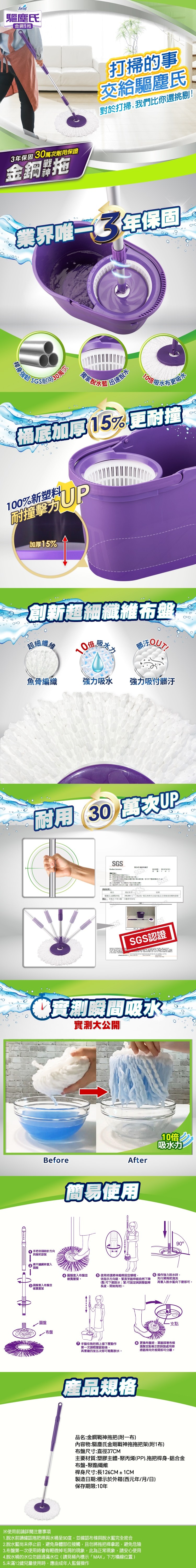 【驅塵氏】金鋼戰神拖把組(1拖1桶2布)-改代全新上市