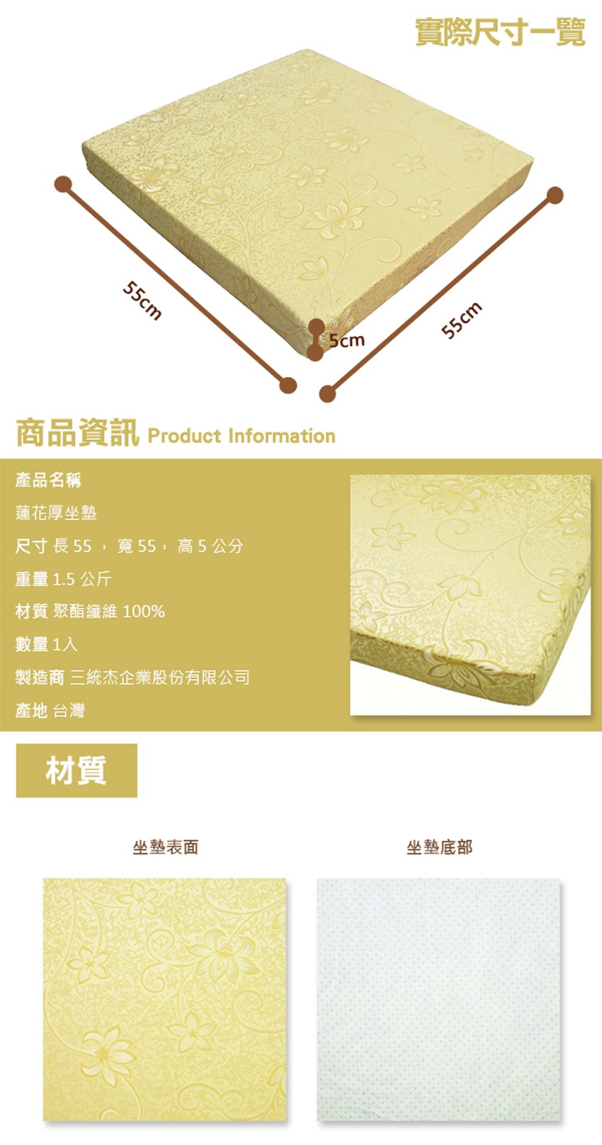 降低腰臀壓力這款【蓮花厚坐墊 55x55x5cm】彈性佳,支撐好,不易變形,降低腰臀壓力,樣式百搭,不論是用於和室、地板或沙發都合適。坐墊採用細心的隱藏式拉鍊設計,防止割傷您的愛椅。細緻車縫、底部止滑,讓它穩固在我們的椅子上,更顯大方喔!