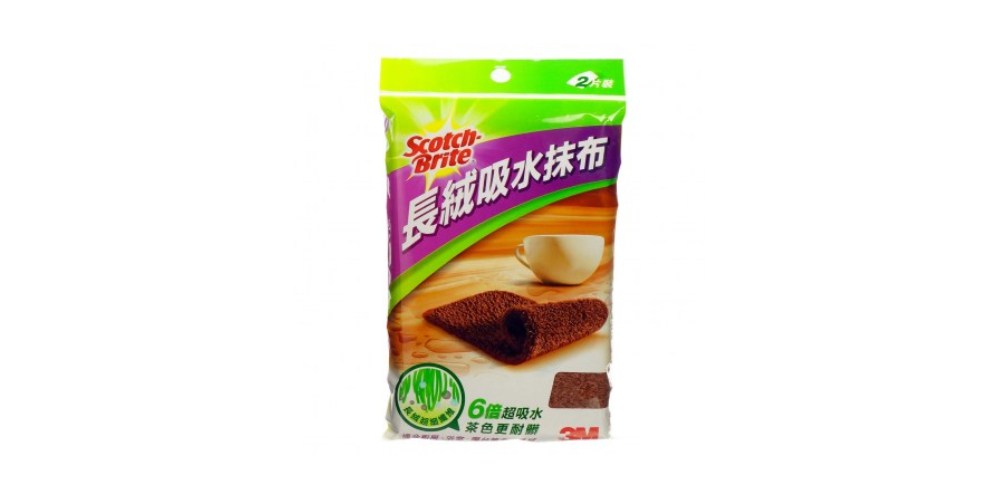棉質毛巾吸水,會有不易清潔的特性,且容易掉毛絮的情況發生,推薦您3M這款【百利長絨吸水抹布2片裝】吸水力強6倍,適合使用於廚房、浴室、陽台等多水清潔區域,長絨特細纖維材質,能有效深入細縫清潔髒污及表面,並具有吸水特強能力,用力使用不會掉毛絮,茶色外觀,使用後更耐髒,清潔容易,使用完畢後快乾不潮濕、不易發霉生長細菌,搭配優秀的毛細原理,毛絨材質容易吸附灰塵,迅速有效的將流理臺或鍋爐盤碟上的油水髒污輕鬆清除,提升工作效率!