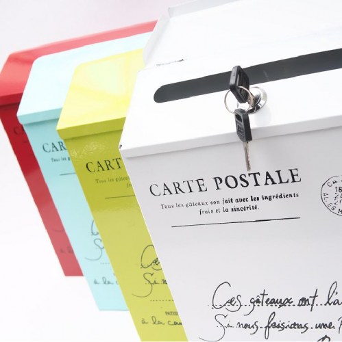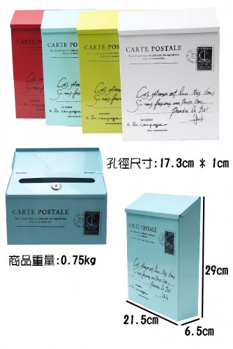 【POSTES厚型鑰匙防水信箱 淺藍】外觀復古風格,簡單大方。上方有防雨蓋,不易淋濕。加大投入孔方便信件投入,背後預留兩孔方便吊掛安裝。附兩把開門鑰匙。