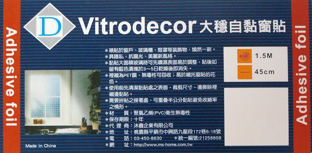 居家窗戶想要多點變化,可黏貼此款【大穩自黏窗貼45X150cm素面RCH91291】,美化窗戶,並可防止強光照射,增加私密性。透過璀璨陽光的照射進入室內會呈現炫麗色彩,海岸圖騰美麗新風格,其背膠為油性背膠,可耐久使用不易褪色,不易撕除,裡襯為環保PET膜,無毒性可回收,易於襯托窗貼的花色。使用簡單,先清潔黏貼處表面,裁切需要的尺寸,採邊撕裡襯邊均勻黏貼於表面,將空氣泡泡推出,如需拼貼時,重疊處半公分黏貼,以避免收縮,輕輕鬆鬆為居家變化風格!