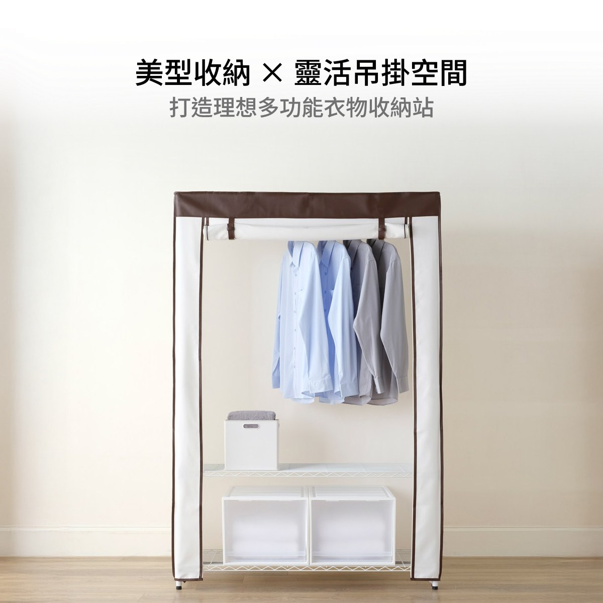 特力屋 烤漆三層衣櫥架 附衣櫥套 寬122x深46x高180公分 白 強固級荷重單層50公斤 書架 收納架 電器架 置物架