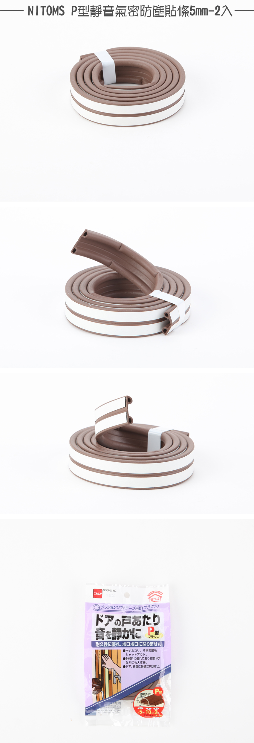 此款【NITOMS P型靜音氣密防塵貼條 5mm 2入】貼於門窗空隙有效靜音,阻隔水或灰塵進入。商品耐用,不易剝落。長久使用也不易破壞經常使用的門窗。