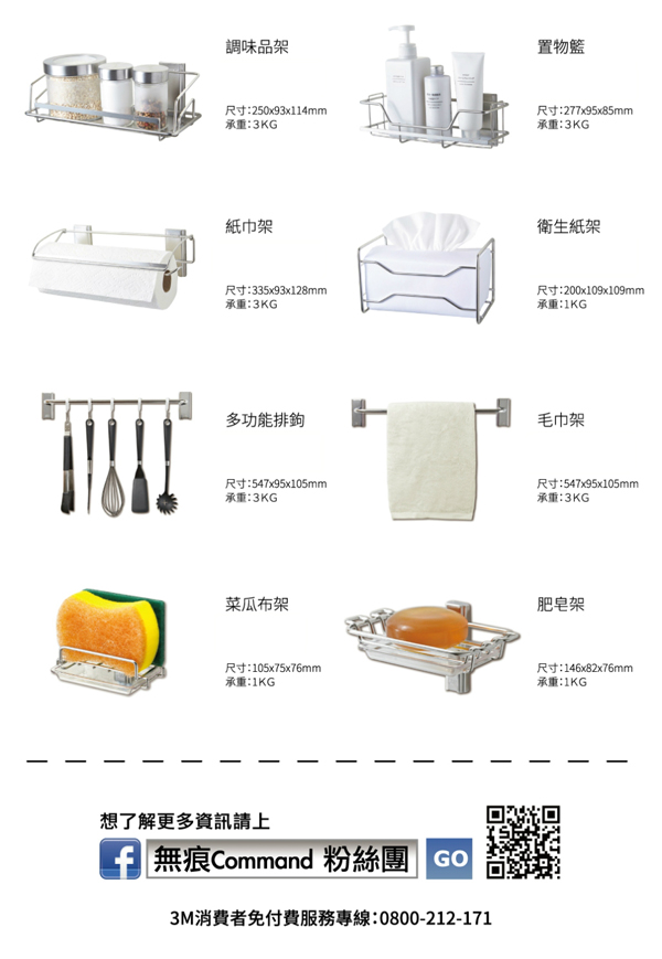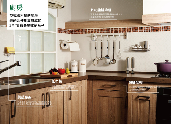 新的金屬收納系列同時具有收納的功能,可收納各種樣式的烹飪工具。也有效擴大廚房空間,讓廚房使用上更便利的效果。全新造型設計,讓高質感的材質完全融合現代化的浴室裝潢,更具現代感,不突兀好美觀。通過ASTM B 117鹽霧測試,並且使用百分之百的304不銹鋼材質。可以襯托出產品的質感,就算在潮濕的環境也不易生鏽。