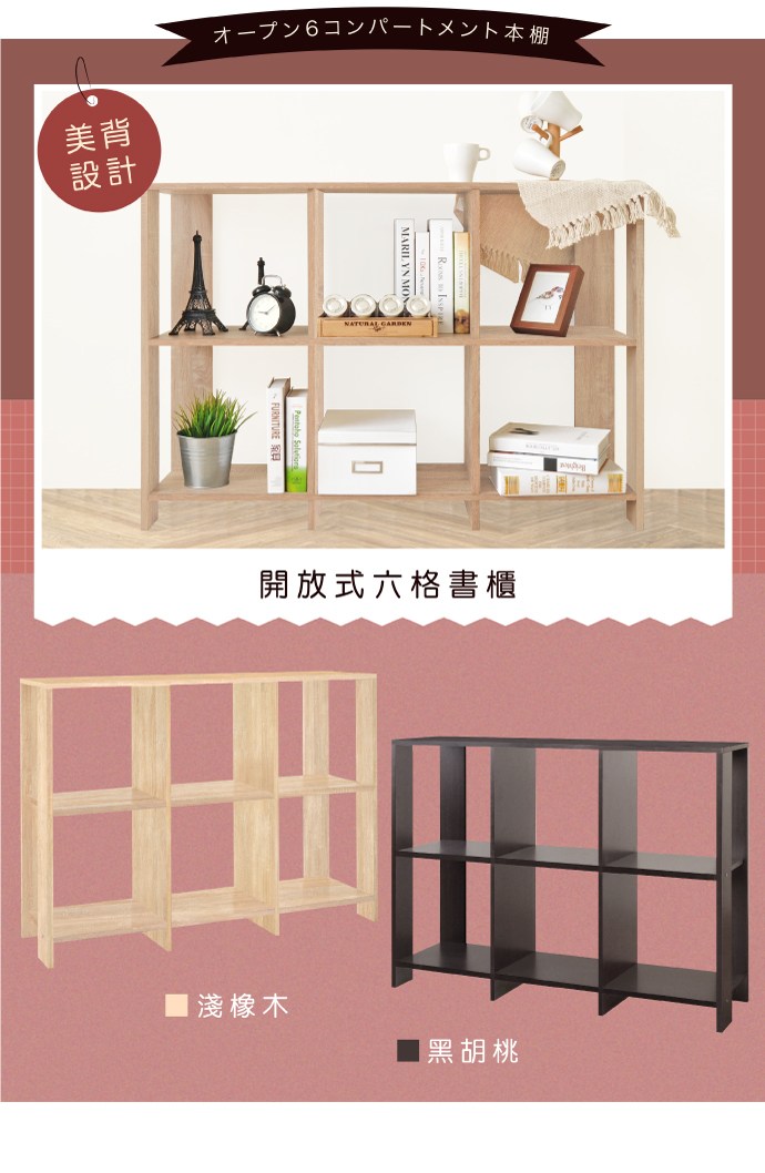 《HOPMA》開放式六格書櫃 台灣製造 橫式置物櫃 收納展示架-淺橡(漂流)木