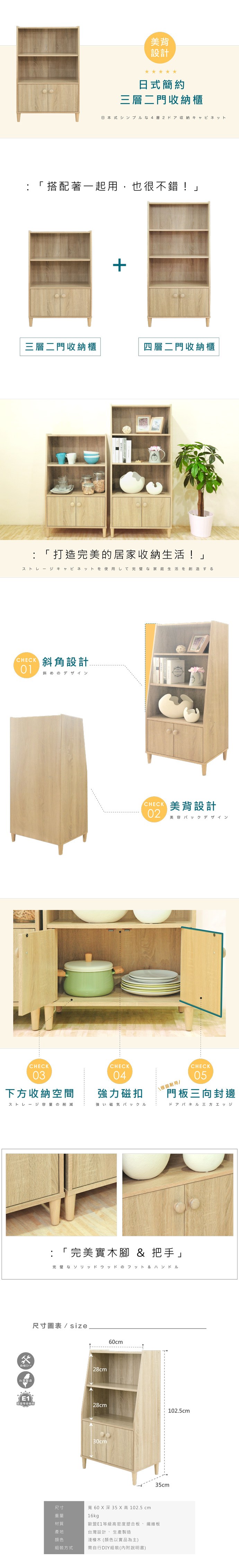 《HOPMA》美背日式簡約三層二門收納櫃 台灣製造 儲藏收納 玄關櫃 置物書櫃-淺橡(漂流)木