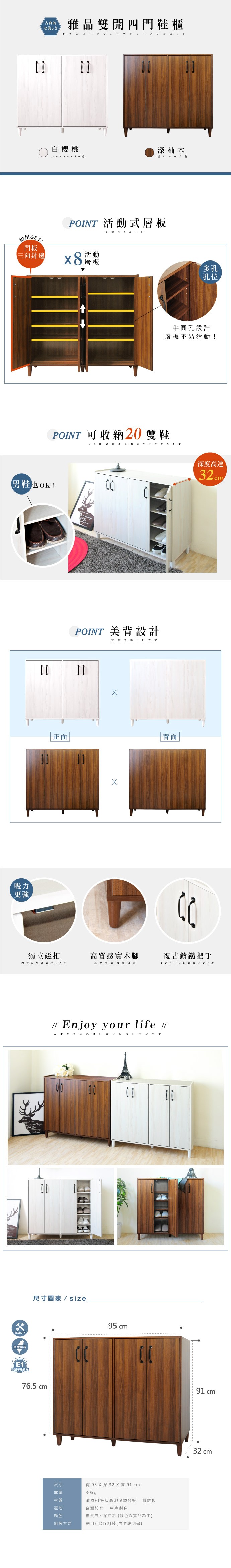 《HOPMA》美背雅品雙開四門鞋櫃 台灣製造 玄關收納 大容量置物-白櫻桃