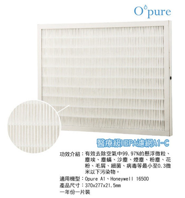 Opure 臻淨 A1空氣清淨機第二層醫療級HEPA濾網 A1-C
