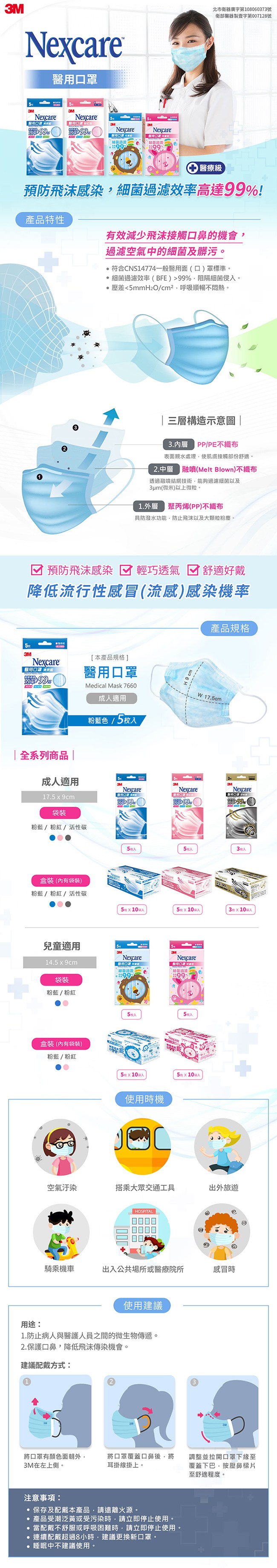 3M 醫用口罩-成人適用 藍5片包