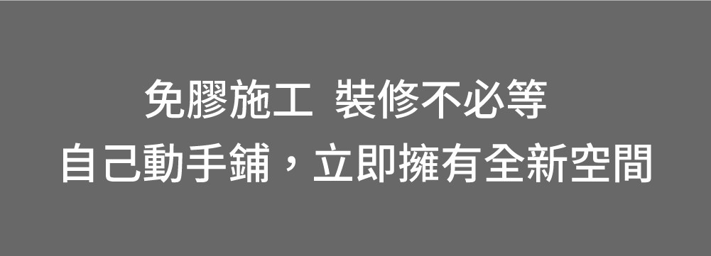 想改變家中氛圍或風格,透過DIY地板改造,就能為家帶來新感受!我們提供多樣花色的免膠塑膠地板,只要對齊平放於乾淨地面,排列好就完成鋪設,如有髒污破損也可單片拿起清洗更換,不毀損原有地板表面就能提升空間質感,搬家也能輕鬆帶著走。