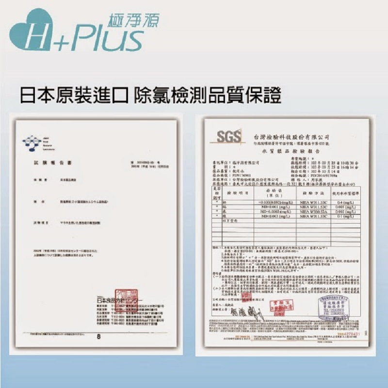 ◎瞬間除氯能力100%。