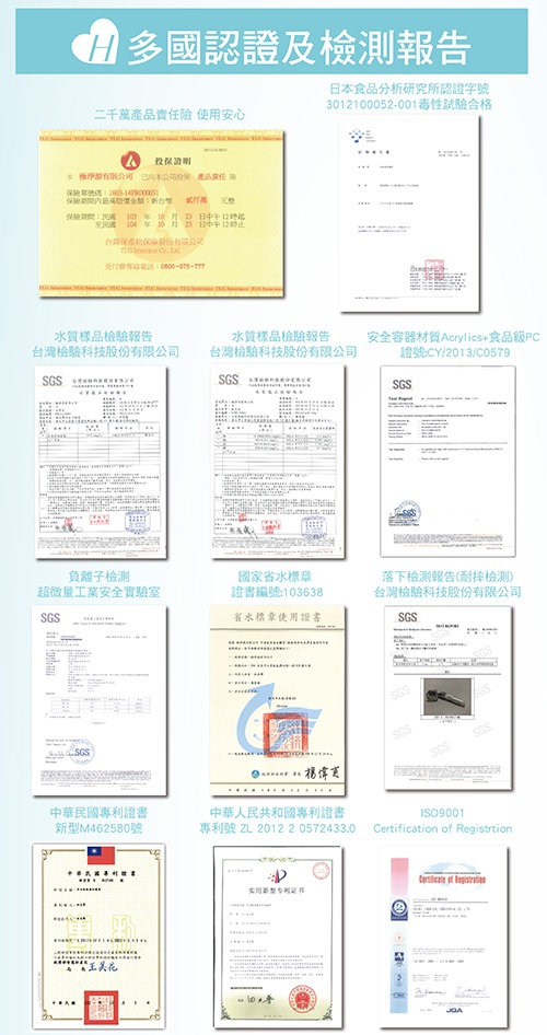 -本產品榮獲多國證照、多國專利,絕無誇大不實,品質安心有保障。