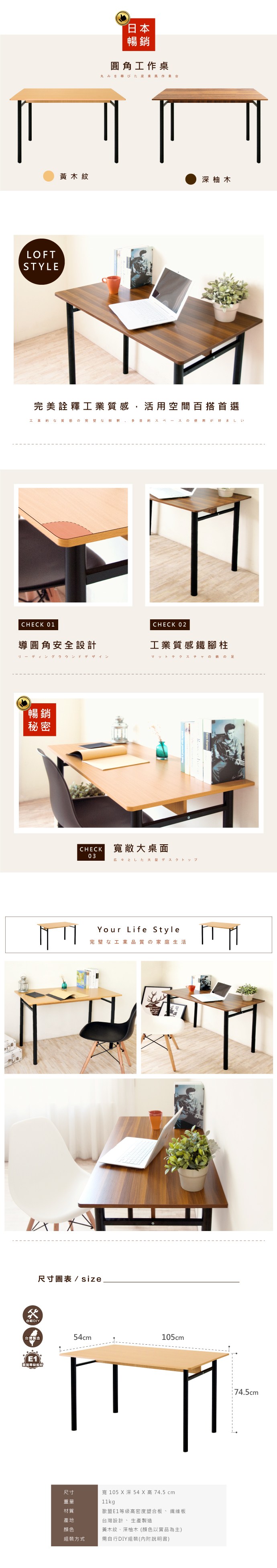 《HOPMA》圓腳工作桌 台灣製造 電腦桌 辦公桌 書桌-黃木紋