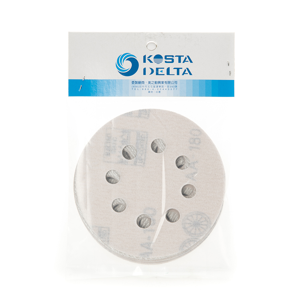 5吋背貼絨布圓砂紙8孔#180(10入)
