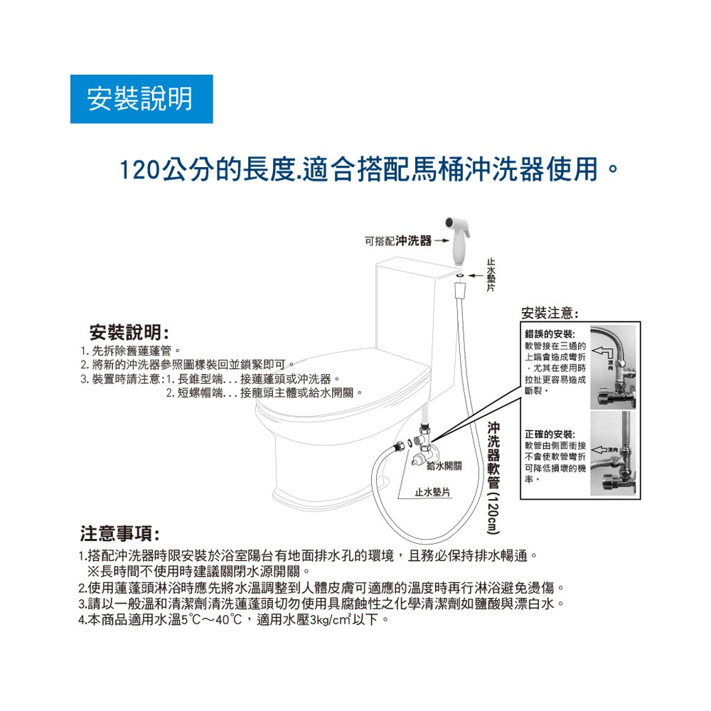 此款【不鏽鋼耐壓管 120cm】經耐壓加工處理.適合於較高水壓的地區使用;120公分的長度.適合搭配馬桶沖洗器使用。
