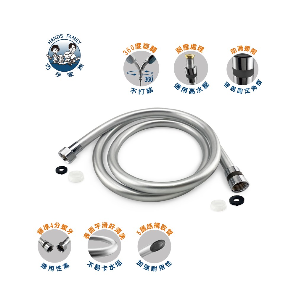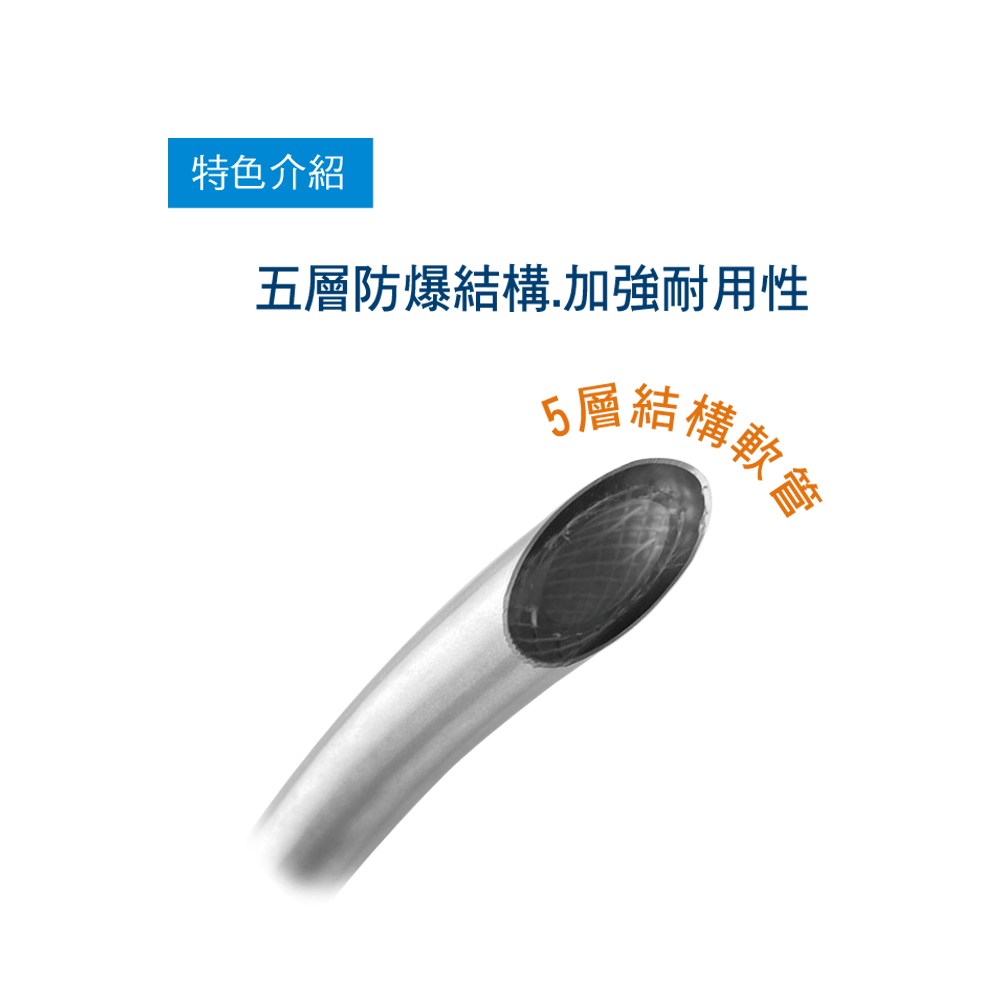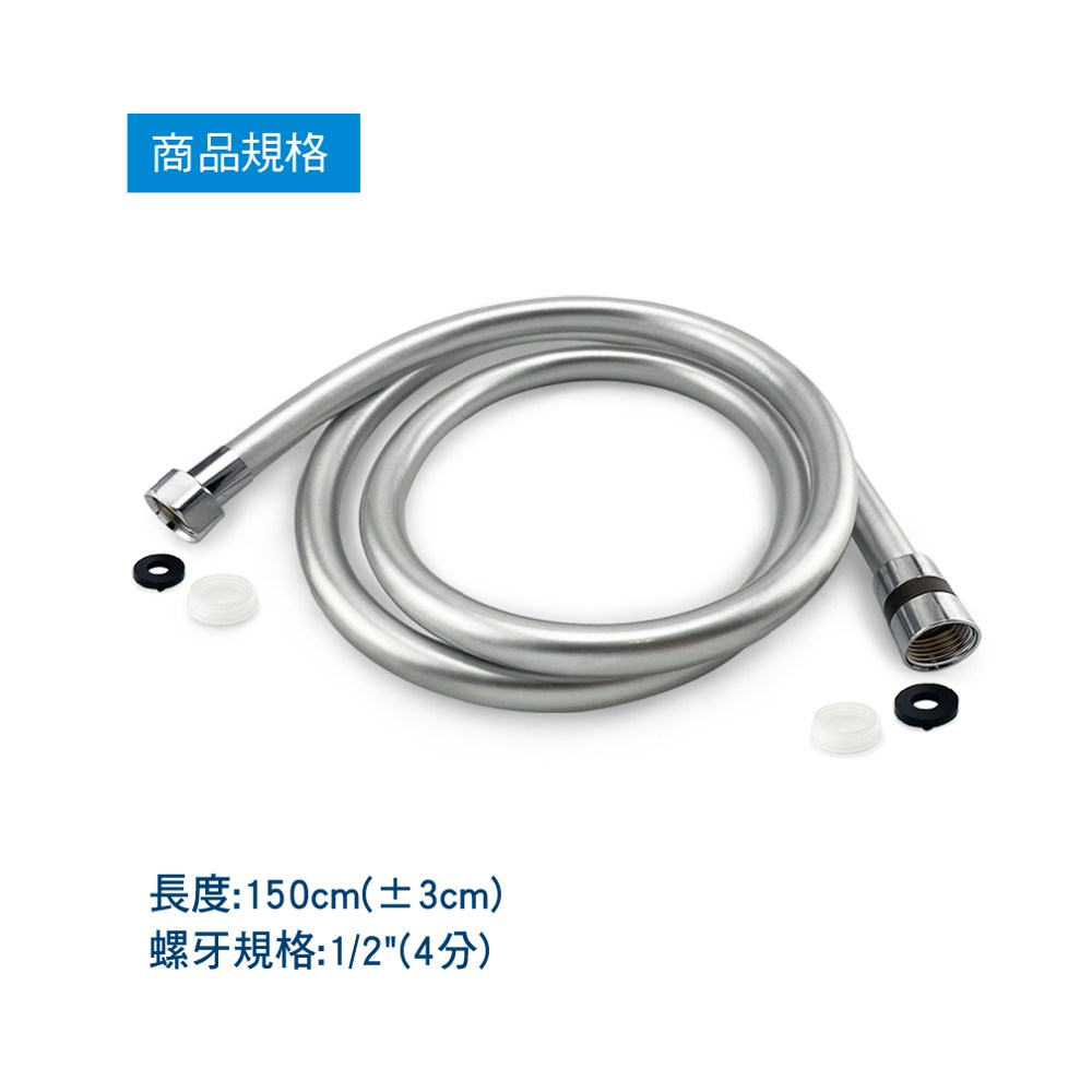 此款【抗污型耐壓管 銀色 150cm】 經耐壓加工處理.適合於較高水壓的地區使用;150公分的長度.適合搭配蓮蓬頭淋浴用。