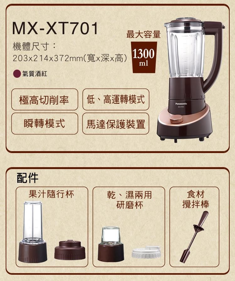 領券獨家最高9折 Panasonic_新食感果汁機 MX-XT701【此品牌館不提供販售,請至商品內文點選離家最近經銷店完成線上訂購流程】