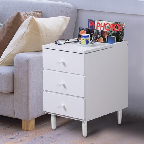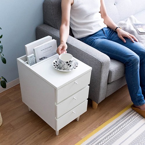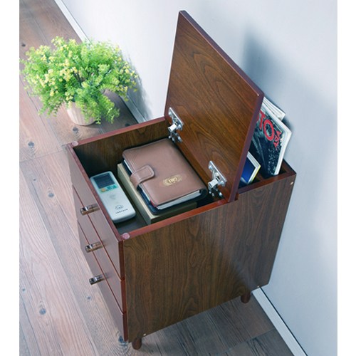 在主體的上板後方,有兩格深度分別是26和13.5公分的雜誌收納架,能夠收納您隨手閱讀過的報章雜誌! 主體上板可以掀起,內部放置面紙盒、遙控器、書本、化妝品、文具等小物都很便利! 此外也設計有兩個高度約10.5公分的收納抽屜,讓本商品就像個百寶櫃一樣收納力驚人,把它當成床頭櫃、桌邊櫃、雜誌架等都很合適喔!