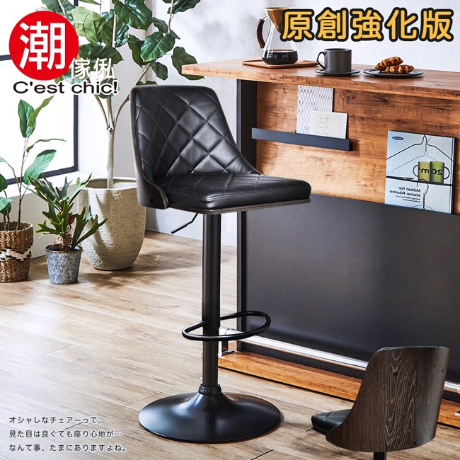 【C'est Chic】Manfredi曼菲蒂吧台椅(皮質)-黑