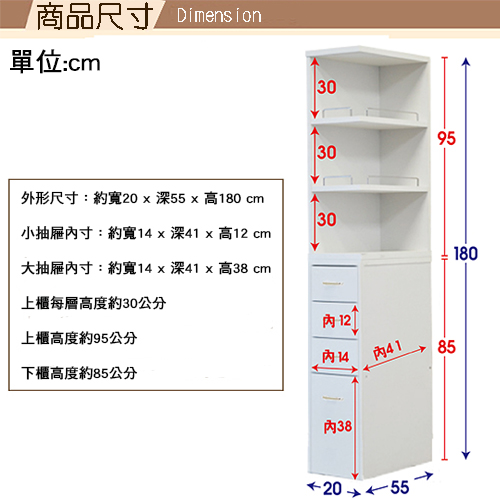 下座高度85CM剛好與流理台同高,可延伸流理台的使用,並附有三個抽屜與一個大抽屜,可供收納。下方大抽屜放入垃圾桶可兼當垃圾桶柜使用,或者拿走垃圾桶後大抽屜可以收納寶特瓶、酒瓶等,輕鬆收納、節省空間。大抽屜還附有活動輪,讓您在使用大抽屜時,可藉由輪子的輔助,讓您更加輕鬆不費力,有了【超強功能隙縫收納櫃】您也可以成為『收納達人』!