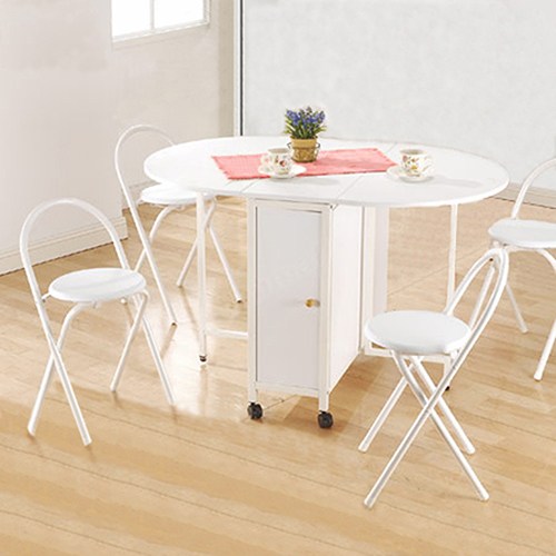 《C&B》橢圓折疊多用途蝴蝶桌椅組(一桌四椅)-白色
